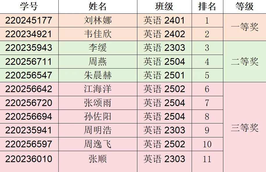 本次竞赛由外国语学院专业教师统一评审,按成绩设立一、二、三等奖并颁发证书,优秀选手将晋级下一阶段赛事。希望全校同学今后踊跃参与、认真备赛,在竞赛中锤炼语言技能,展现学子风采。