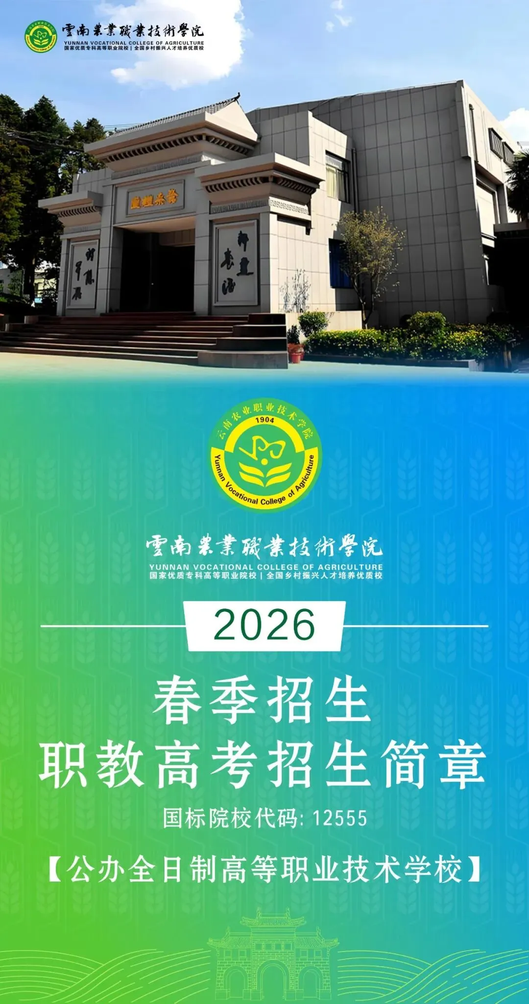【零一变升学-春招简章】云南农业职业技术学院2026春季招生职教高考招生简章