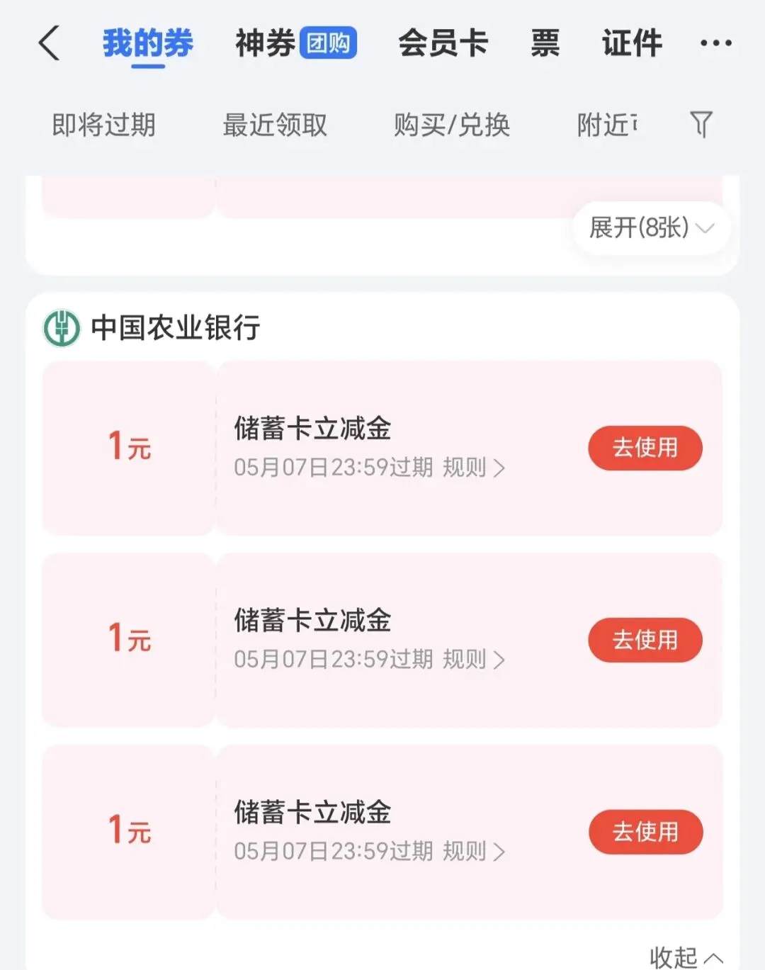 最新农行5元立减金