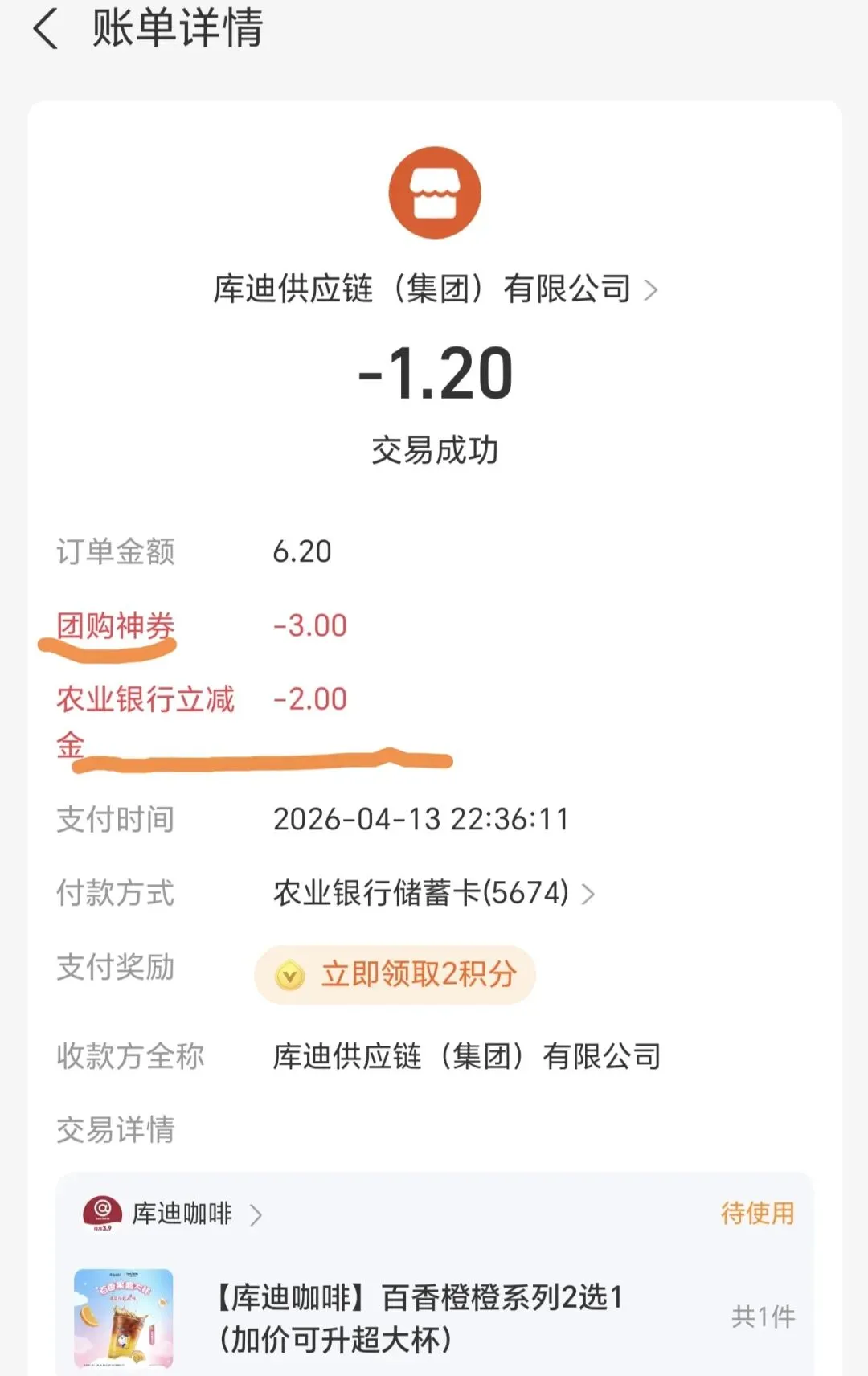 如下图,1.2拿下库迪咖啡