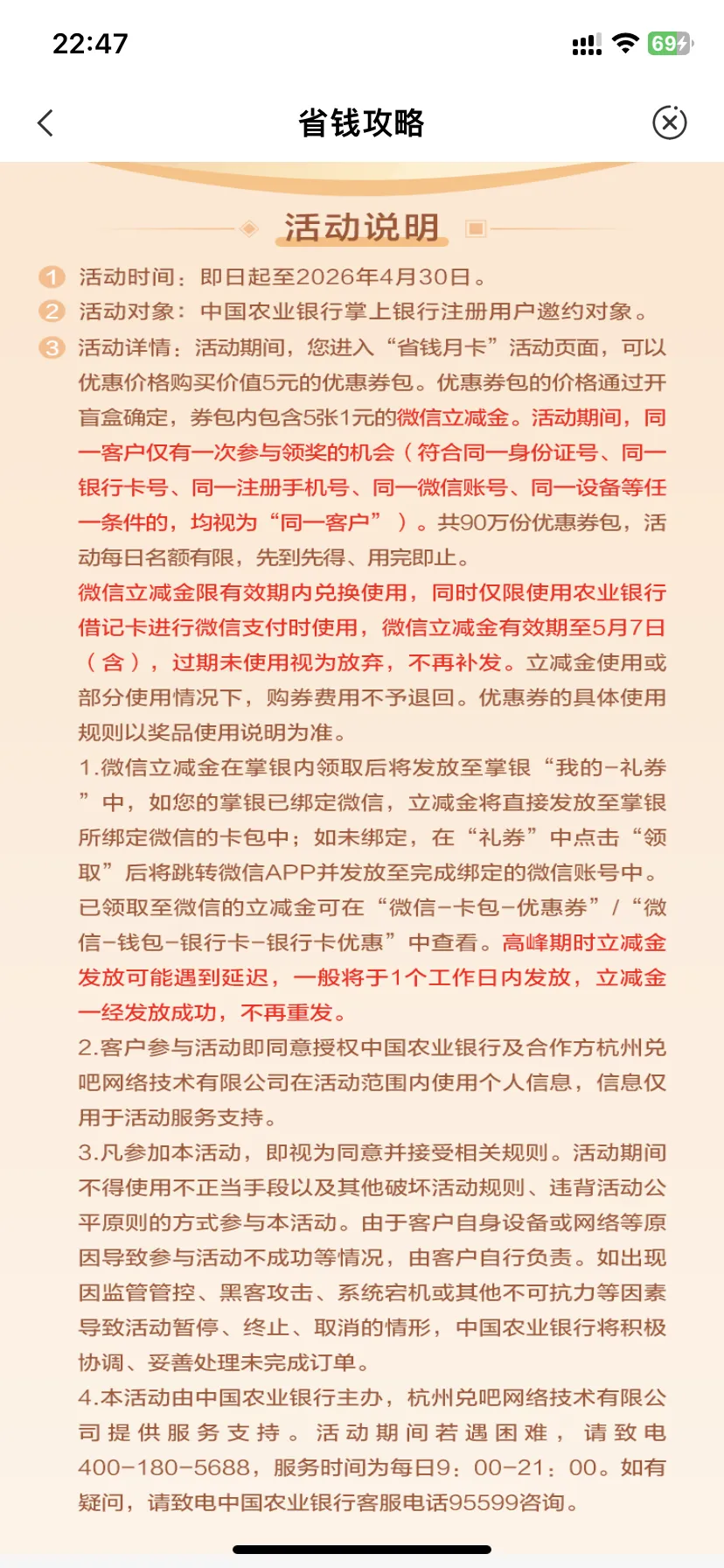 快!农行5元立减金