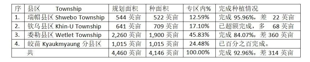 专区内各县区规划种植的黄油豆及实际种植的面积如下表: