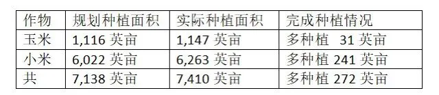 实皆省明景县区作为冬作物种植的玉米与小米作物超过规划面积