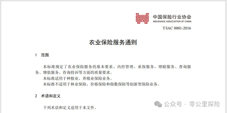 本标准规定了农业保险服务的基本要求、内控管理、承保服务、理赔服务、查询服务、增值服务、咨询投诉等方面的质量要求。