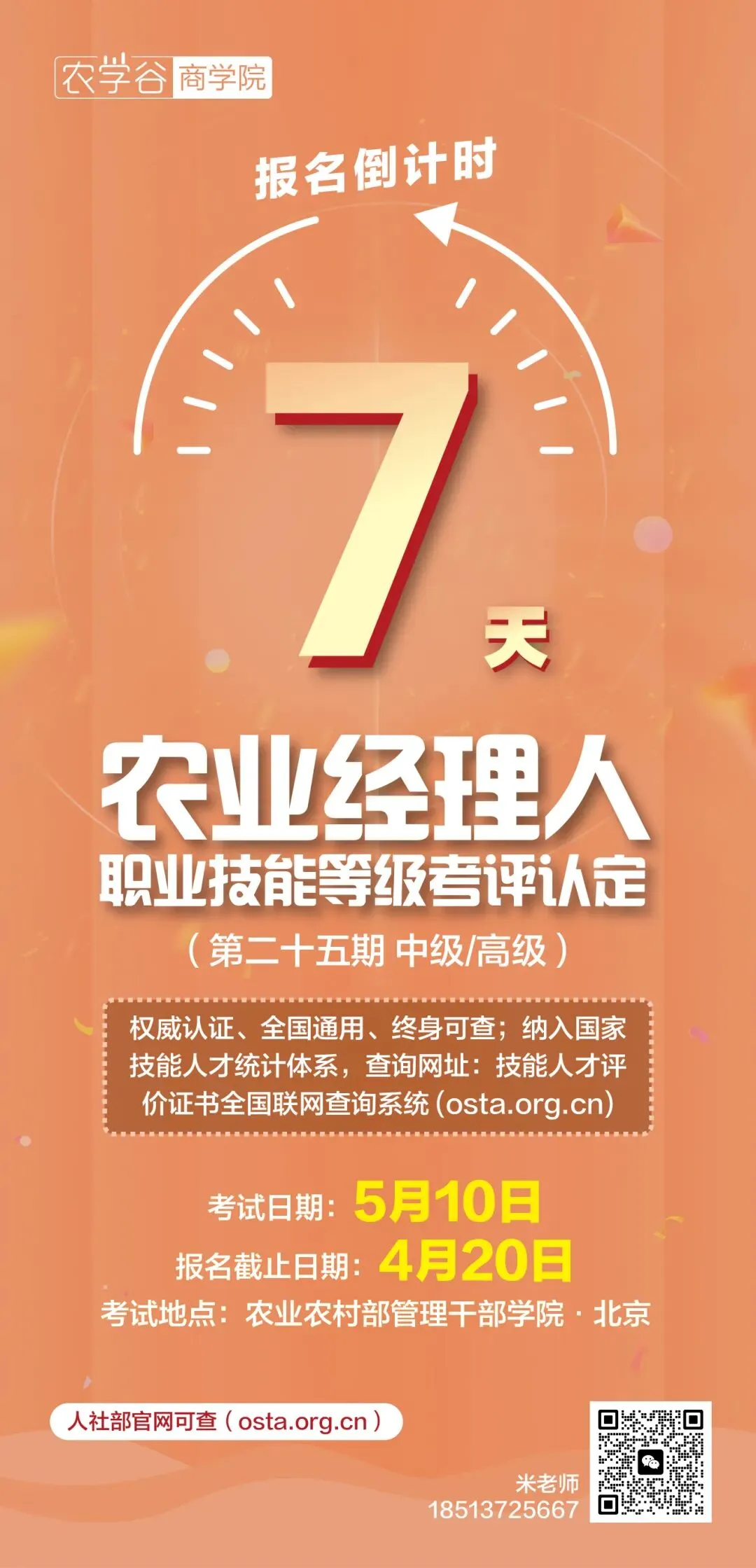 | 农业经理人 | 4月20日 | 5月10日 | 四级 |