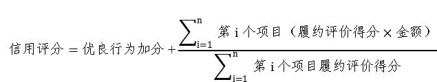 其中,n为纳入评价范围的项目总数,即近3年实际已完成履约评价的项目。市场主体信用评分经优良行为加分后超过100分的,按100分核定。