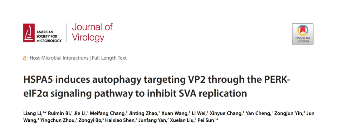 J Virol.|安徽农业大学孙裴教授团队最新研究:HSPA5通过PERK-eIF2α通路诱导自噬靶向VP2,抑制塞内卡病毒SVA复制