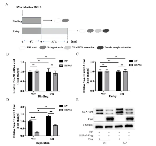 HSPA5作用于病毒复制阶段,而非吸附或进入