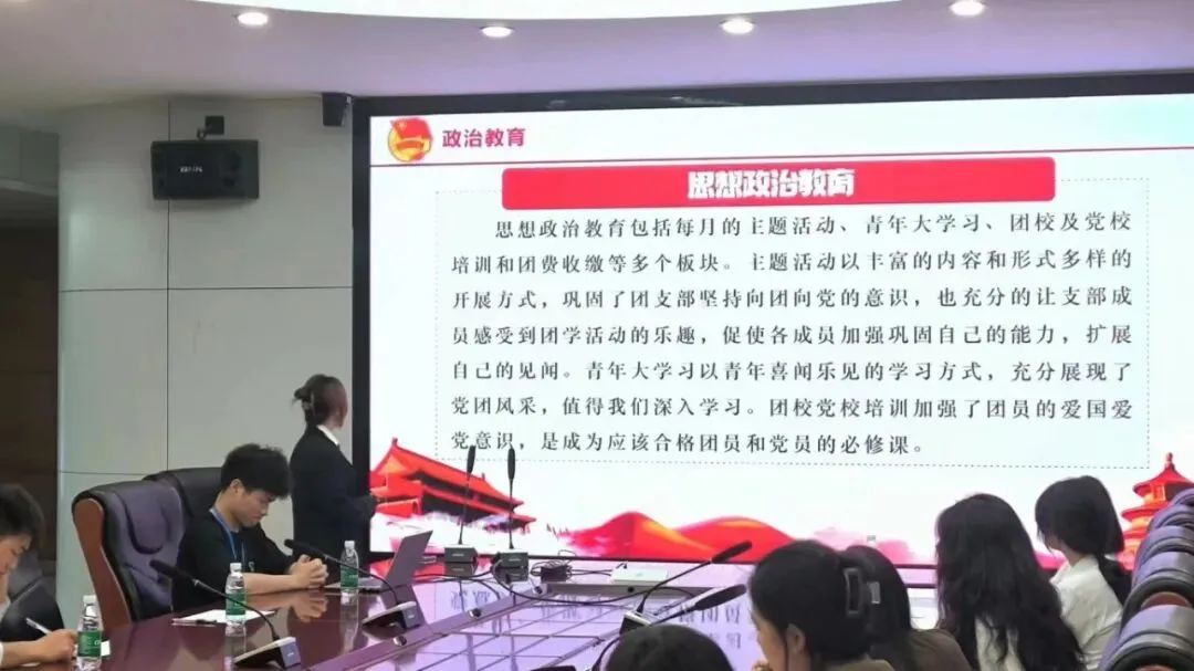 校团委副书记周星对各团支部展示汇报表现给予充分肯定,强调团支部是共青团基层堡垒,要以思想引领、政治建设为核心,规范落实团务工作。鼓励各支部结合专业特色打造亮点,立足青年需求做好服务,带动全体同学共同成长。希望各团支部发挥示范引领作用,以评促建,推动全校基层团组织建设提质增效。