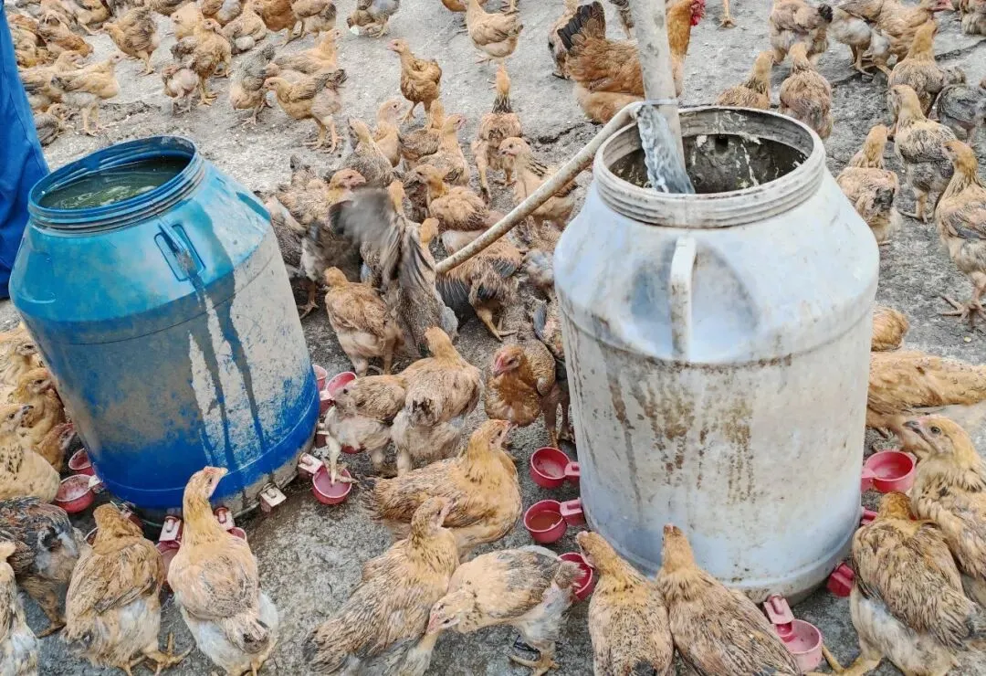韦仕忠是当地小有名气的养鸡能手,依托桉树林天然生态优势,他探索出生态林下散养模式。目前存栏土鸡1000只,今年预计出栏1800只,养殖周期约200天,成熟土鸡由城区收购商上门收购,销路稳定。为提升养殖效率,韦仕忠结合实际创新设计半自动化饮水设备,实现无人看管时鸡群正常饮水,大幅降低人工成本;同时坚持科学养殖,定期赴柳州等地学习先进养殖技术,优化饲养管理,保障土鸡品质。