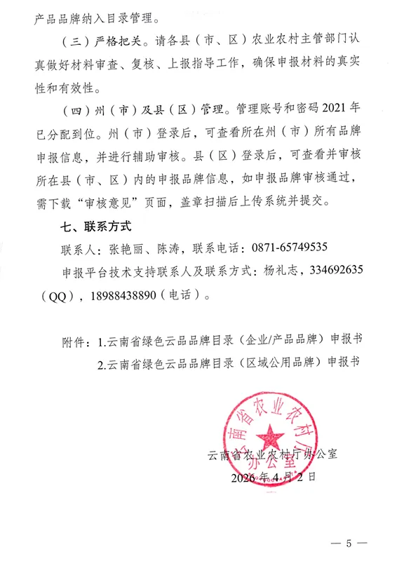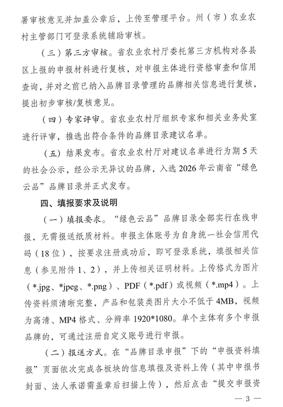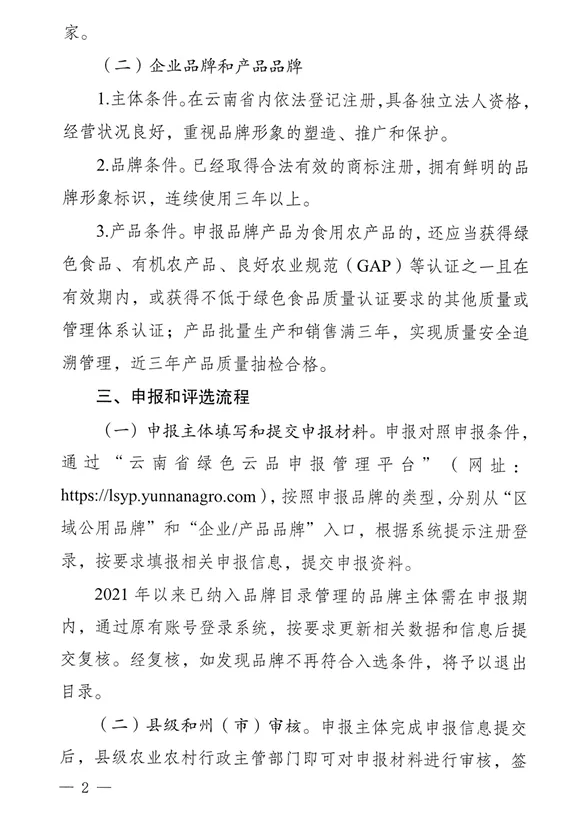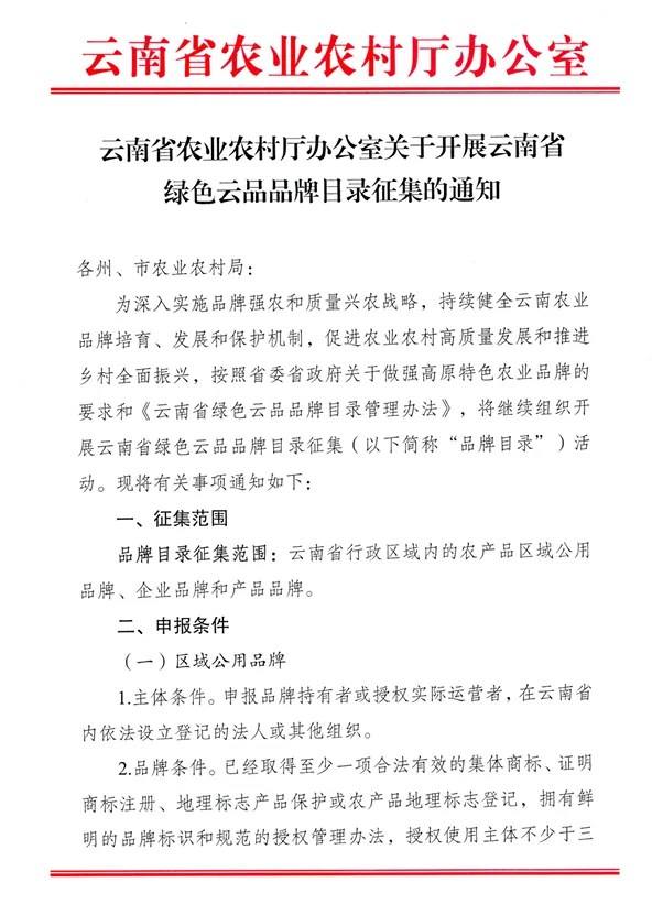 >【三农政策】云南省农业农村厅办公室关于开展云南省绿色云品品牌目录征集的通知