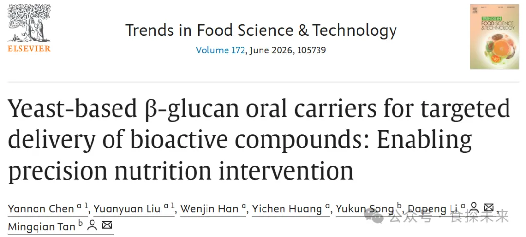 Trends in Food Science & Technology| 酵母基 β- 葡聚糖口服载体用于生物活性物质靶向递送:助力精准营养干预