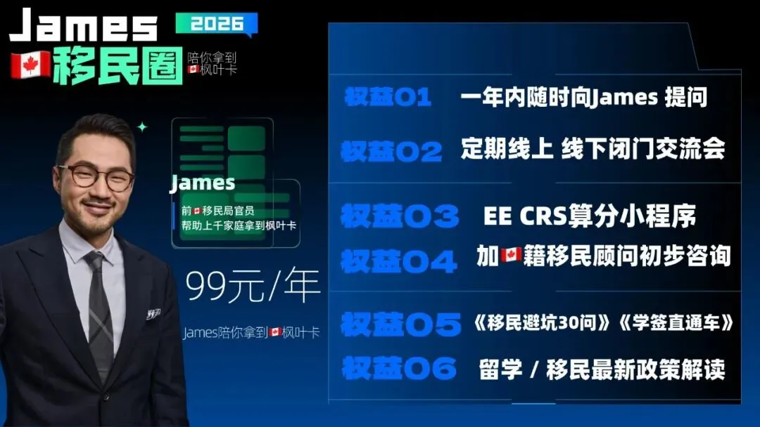 如果你想加入这个「James🇨🇦移民圈」(99元/年)直接购买下方即可