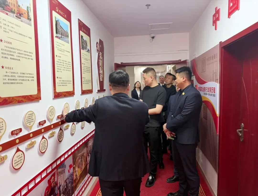 步入党建文化长廊,首先映入眼帘的是庄严的入党誓词展板。“遵守党的章程,履行党员义务……为共产主义奋斗终身”一行行金色大字,让参观者肃然起敬。随行讲解员详细介绍,商会成员们驻足聆听,对农行将党史学习教育融入日常、内化于行的做法表示高度赞赏。