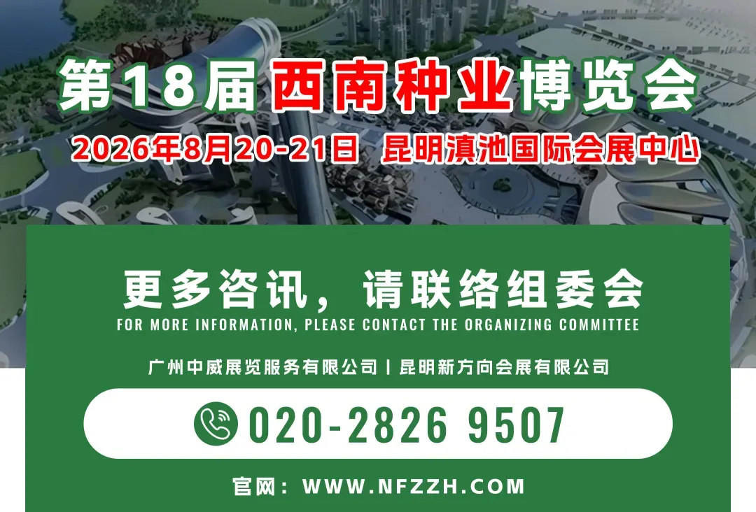 第18届西南种业博览会将于2026年8月20-21日在昆明滇池国际会展中心盛大启幕。本届展会以“振兴种业,科技赋能”为主题,规模升级至100000平方米,将集中展示国内外最新良种、先进育种技术及智慧农业解决方案。