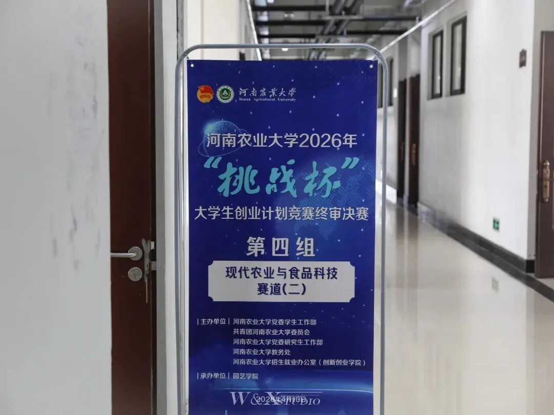 4月10日,河南农业大学2026年“挑战杯”大学生创业计划竞赛终审决赛在龙子湖校区顺利落下帷幕。赛事由党委学生工作部、校团委、党委研究生工作部、教务处、招生就业办公室(创新创业学院)主办,机电工程学院、软件学院、生命科学学院、农学院、园艺学院、经济与管理学院、文法学院分赛道承办。