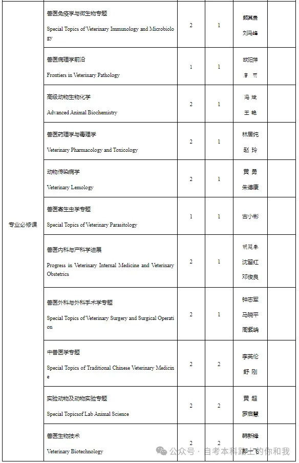 备注:同等学力或跨一级学科的硕士生需补修本一级学科本科生的专业必修课程:《动物微生物学及免疫学》、《动物解剖学》、《动物组织与胚胎学》。