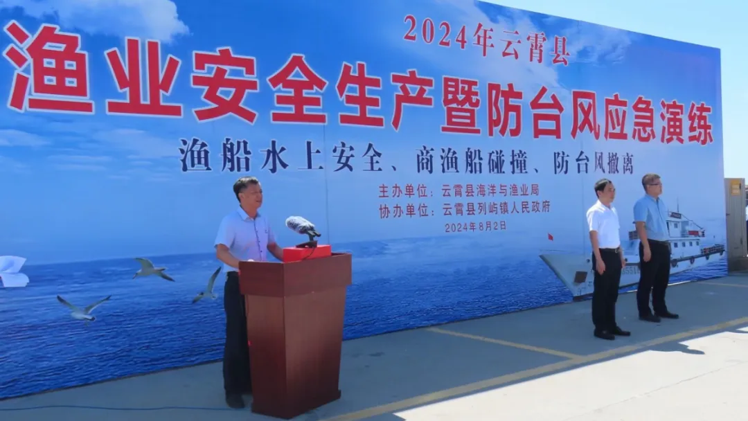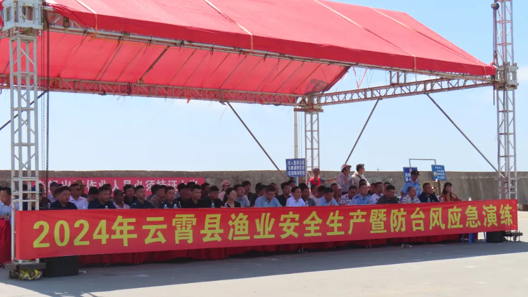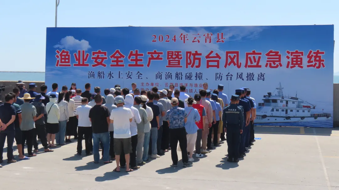 云霄县政府、海洋与渔业局、应急管理局、城市管理和综合执法局、公安局、交通运输局、文旅局、消防大队、海警局云霄工作站等单位领导和5个沿海乡镇政府分管领导、船管员和渔民代表共100余人参加演练活动。
