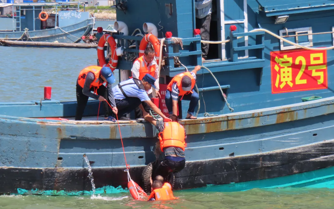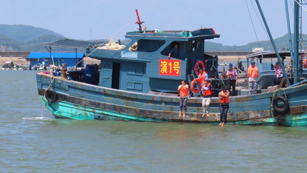 渔业船员穿戴救生衣演练;渔业船员使用灭火器灭火演练;渔船与商船碰撞救援处置暨渔船防台风撤离应急演练。