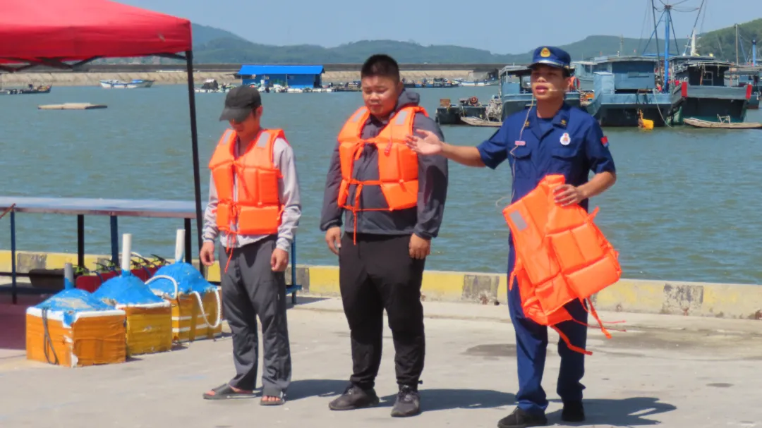 演练结束后,相关工作人员向渔民群众发放渔业安全宣传资料和宣传物品,普及渔业安全生产知识,就渔工责任保险进行答疑解惑。