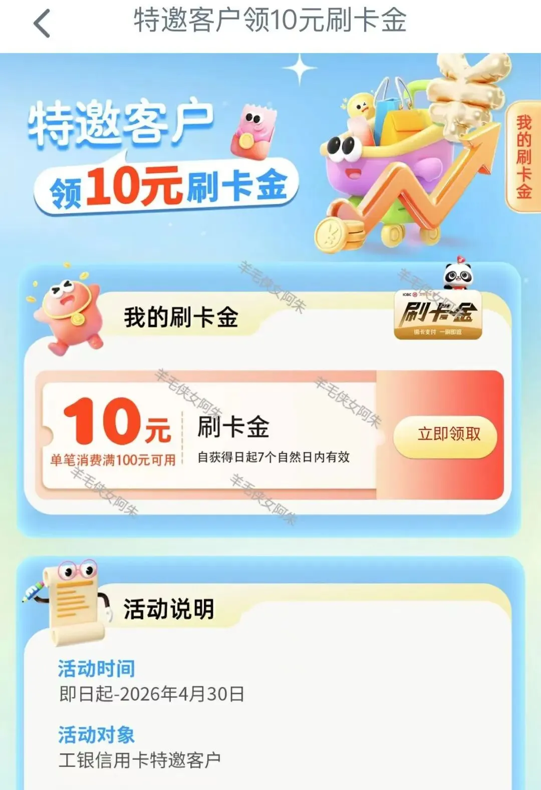 ▋工行特邀10元刷卡金