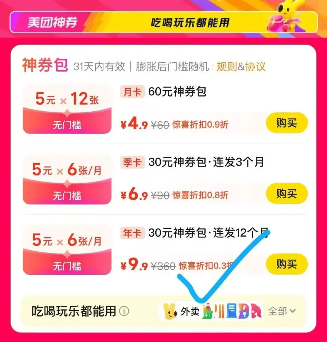速❗️美团新出 9.9💰开360元年卡