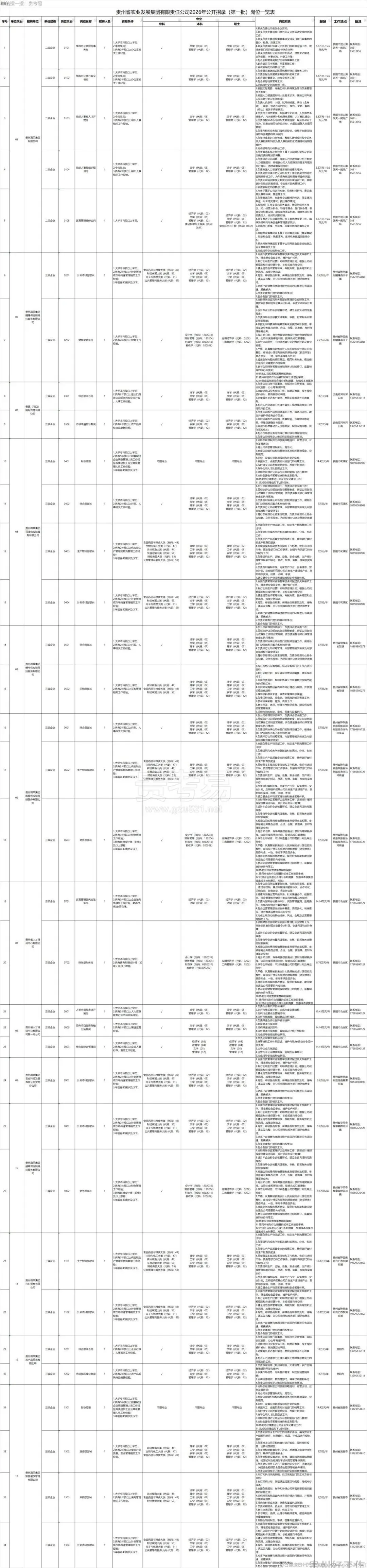 附件1:贵州省农业发展集团有限责任公司2026年公开招录第一批岗位一览表.xlsx (37.03 KB)