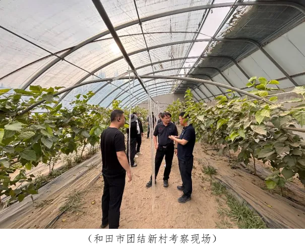4月7日至9日,北京农业企业考察团一行先后前往第十四师224团“田穆园”设施蔬菜生产基地、天成农业改造大棚设施番茄种植基地、国农优品芦笋种植基地、福马农业设施樱桃种植现场、新疆盛世华强农业科技有限公司、和田县英阿瓦提乡明园村拱棚西瓜种植基地、墨玉县鸿源农业科技有限公司、新疆农牧业投资(集团)有限责任公司万亩戈壁沙漠设施农业建设基地、疆味园设施西梅种植基地、洛浦县恰尔巴格镇巴什苏尕克库木村芦笋示范基地、洛浦镇塔盘村温室大棚设施农业示范户、和田市团结新村等重点农业产业点位,实地了解和田设施农业种植生产、市场销售、产品出口、联农带农等情况,深入交流设施农业建设运营模式、品种培育选择、市场拓展渠道等。