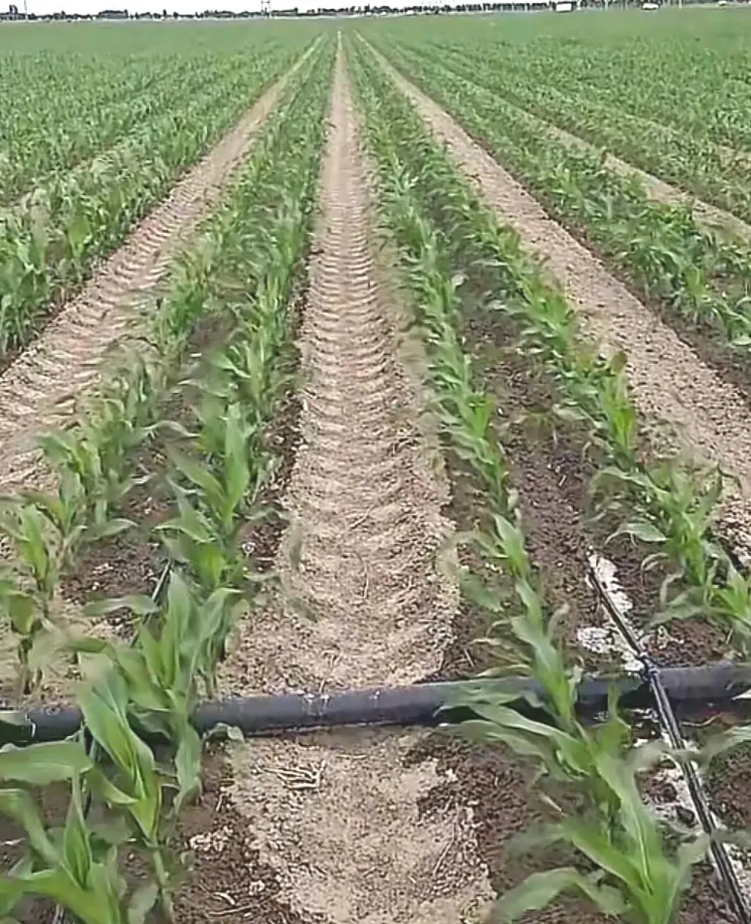 8.提前做好防草工作。 浅埋滴灌浇水后地表同样是湿润的,所以无法起到控制杂草的作用。苗后人工锄草,因为滴灌带被土掩埋无法看清具体位置,锄头等农具极易划破滴灌带。注意提前喷施封闭除草剂或者选择黑色地膜覆盖,有效防止人工锄草造成滴灌带破损。