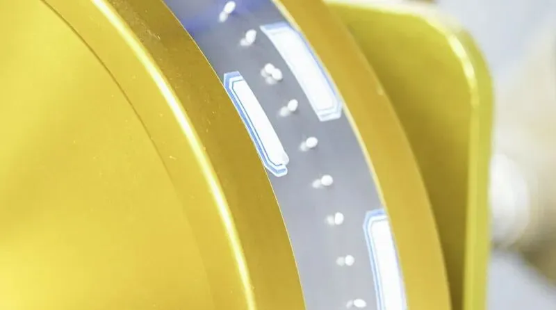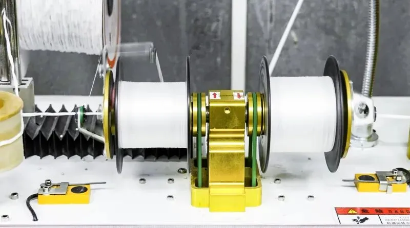 随后,经过丸粒化处理的种子被送入线性编织机,一粒粒精准包裹进可降解纸带中,每粒种子间距均匀。通过机械化播种设备,纸带被铺设到田间。纸带自然降解后,种子吸收“防护衣”中的营养成分,顺利破土而出,实现株距均匀、生长整齐。