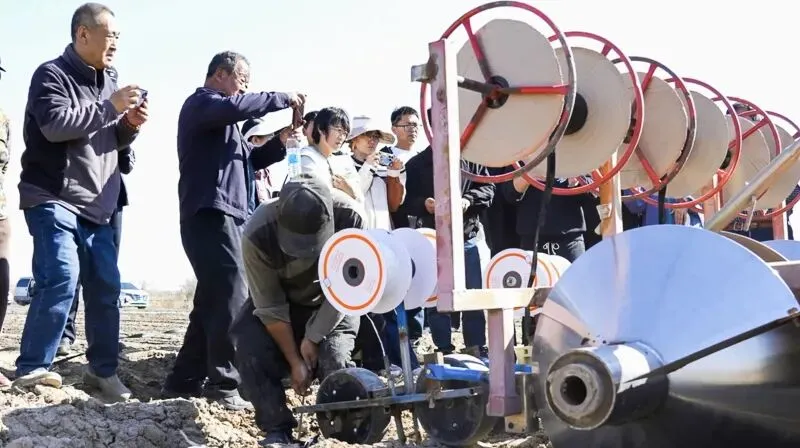 从第一代简易编织机,到能精准控制株距的第二代设备,再到如今可调节编绳松紧度的全新机器,张双荣的合作社逐步实现了播种全程机械化。