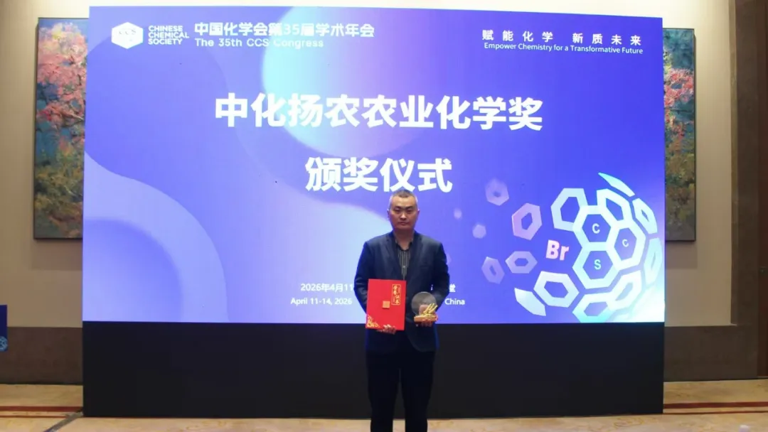 会议期间,还隆重颁发了2025年度中化扬农农业化学奖。该奖项由中国化学会农业化学专业委员会设立,江苏扬农化工股份有限公司资助,旨在表彰在化学与农业交叉领域取得卓越成绩的中国科研工作者,推动化学深度融入农业创新,促进农业化学学科高质量发展。学院解加卓副教授荣获2025年度中化扬农农业化学新秀奖,充分彰显了学院在农业化学领域的人才培养成效与科研创新实力。
