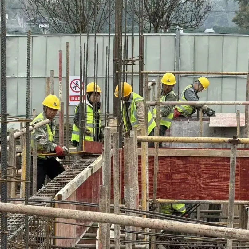 工人们正进行钢筋绑扎与模板安装