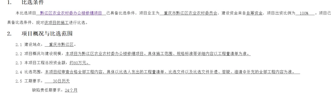 >黔江区农业农村委办公楼修缮项目比选