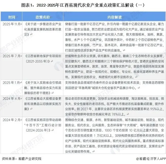 ——江西省现代农业产业重点政策梳理