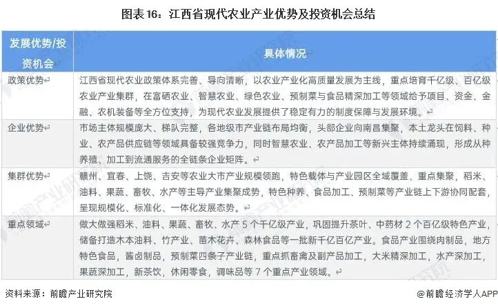 江西省现代农业产业投资机会分析
