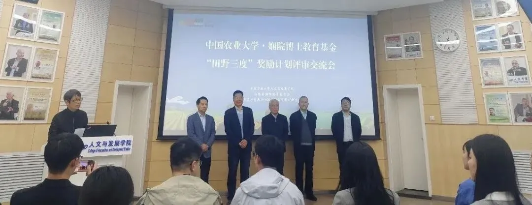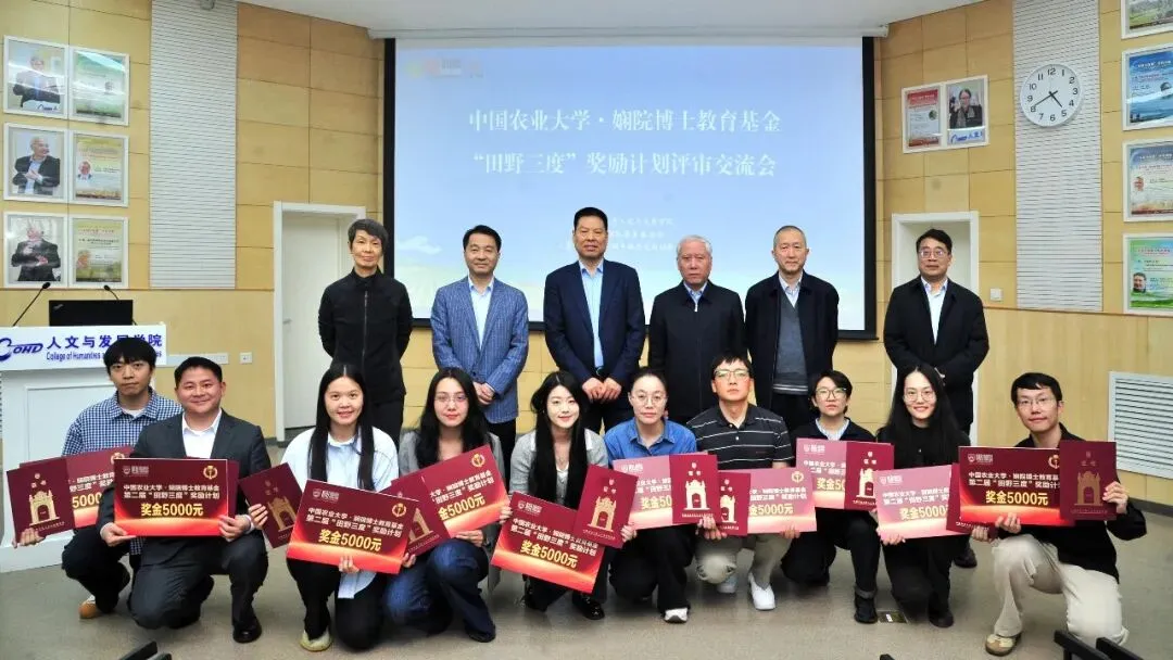 为鼓励和表彰全国高等院校和研究机构在社会科学领域扎根田野(指广义的田野,即深入实践)开展研究的博士研究生。2026年4月12日,由中国农业大学人文与发展学院、山西省娴院慈善基金会、北京乡村振兴与城乡融合发展创新中心共同主办的第二届中国农业大学・娴院博士教育基金“田野三度”奖励计划评审交流会,在中国农业大学(西校区)人文与发展学院报告厅举行。