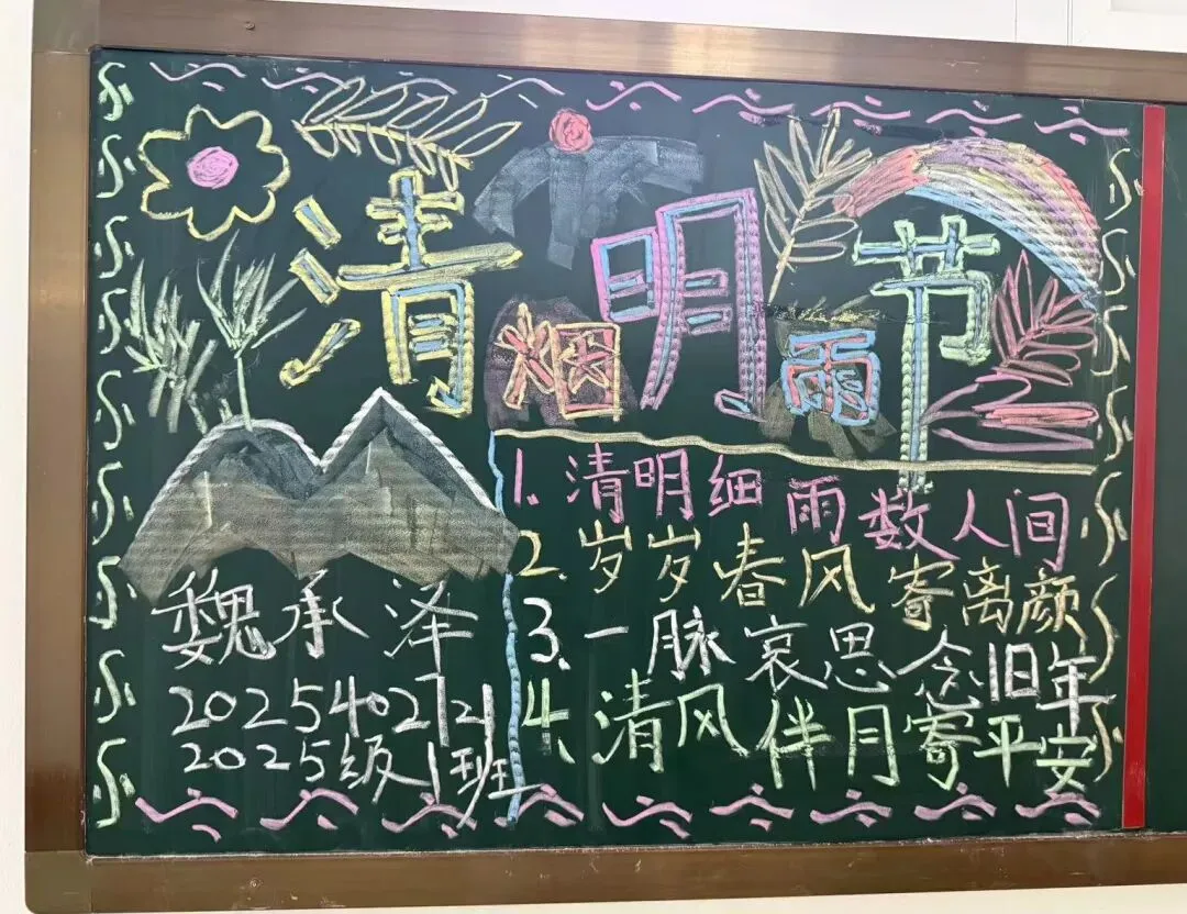 为引导青年学子深入感悟清明踏青的民俗渊源与文化内涵,增强对中华优秀传统文化的认同感与传承意识,4月3日至4月7日,农业与生物学院于2号教学楼举办了“清明踏青寻春意,翰墨传情颂韶华”主题黑板报创作活动。
