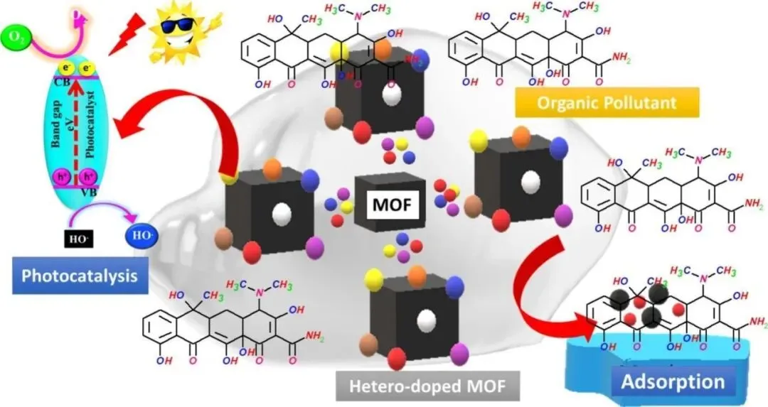 随着工业化和城市化的快速推进,染料、抗生素、酚类及农药等有机污染物在水环境中的持续累积对生态系统和人类健康构成了严重威胁。金属有机框架(MOFs)因其超高比表面积、可调孔道结构和化学多功能性,成为水处理领域的研究热点。然而,传统MOFs在实际应用中常面临稳定性差、性能受限等问题。针对这一瓶颈,支金虎教授团队系统综述了杂原子掺杂策略在MOFs功能化改性中的最新进展,展示了杂原子掺杂MOFs作为下一代杂化材料在有机污染物去除中的巨大潜力。