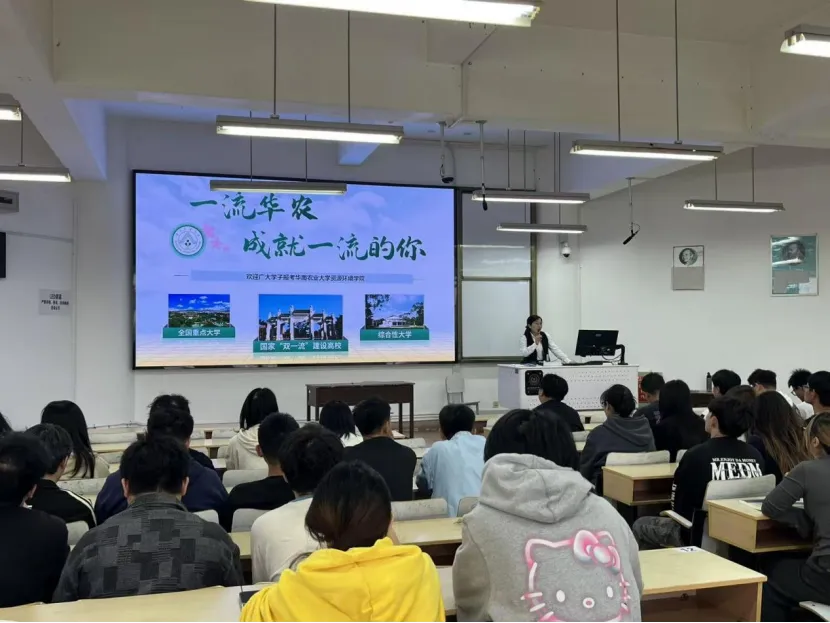 座谈期间,为扩大我院研究生招生影响力,吸引优质生源,副院长舒迎花为云南农业大学资源与环境学院2023级农业资源与环境专业学生开展了一场研究生招生宣讲。宣讲中,副院长舒迎花详细介绍了我院研究生招生专业、培养方案、师资力量、科研平台、就业前景等情况,重点解读了招生政策、报考流程及优惠措施,并与现场学生进行互动交流,耐心解答同学们关于报考方向、复习备考、专业发展等方面的疑问,有效激发了同学们报考我院研究生的热情。