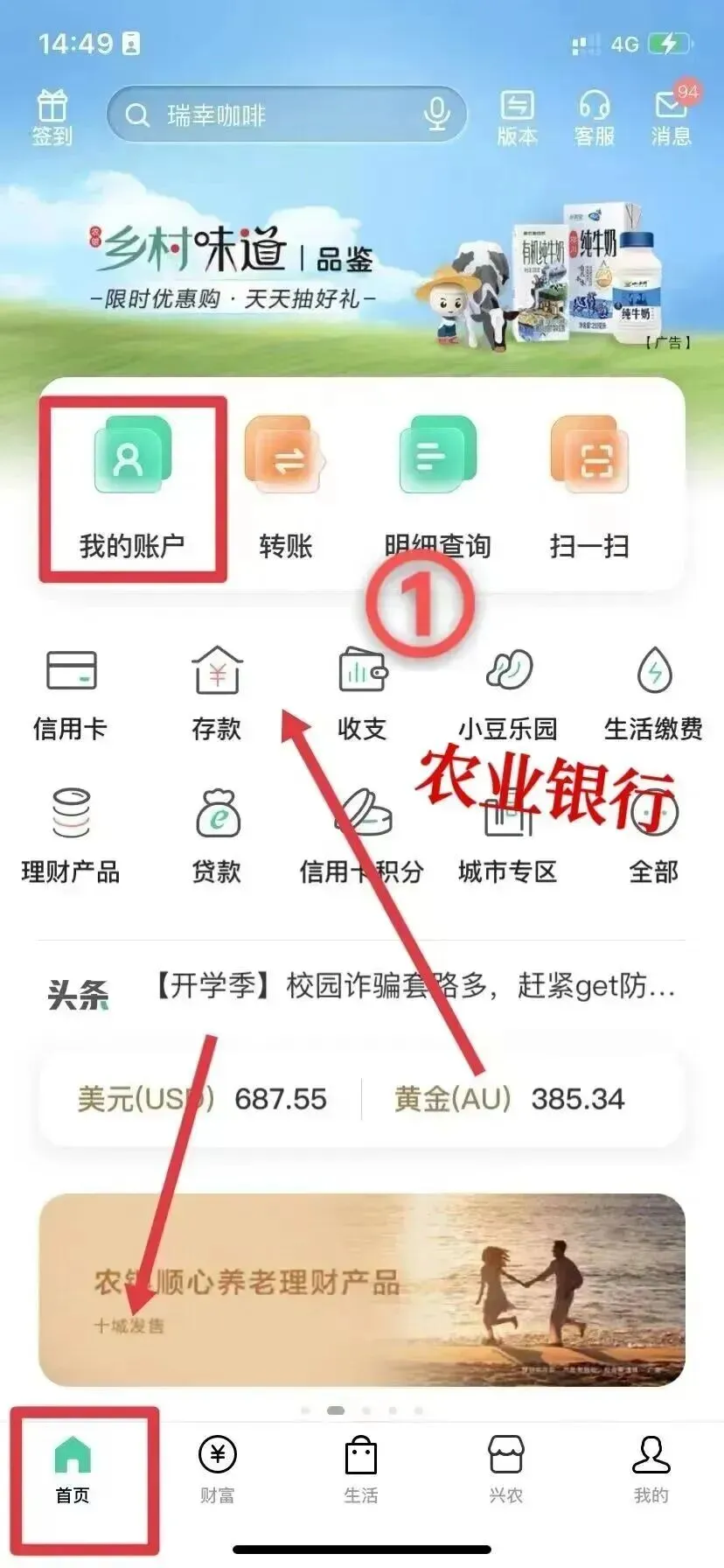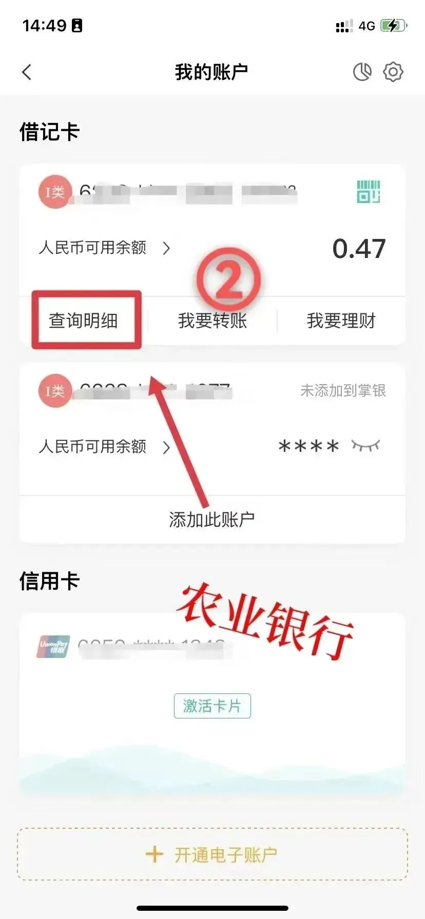1.打开银行 APP → 左下角【首页】→【我的账户】