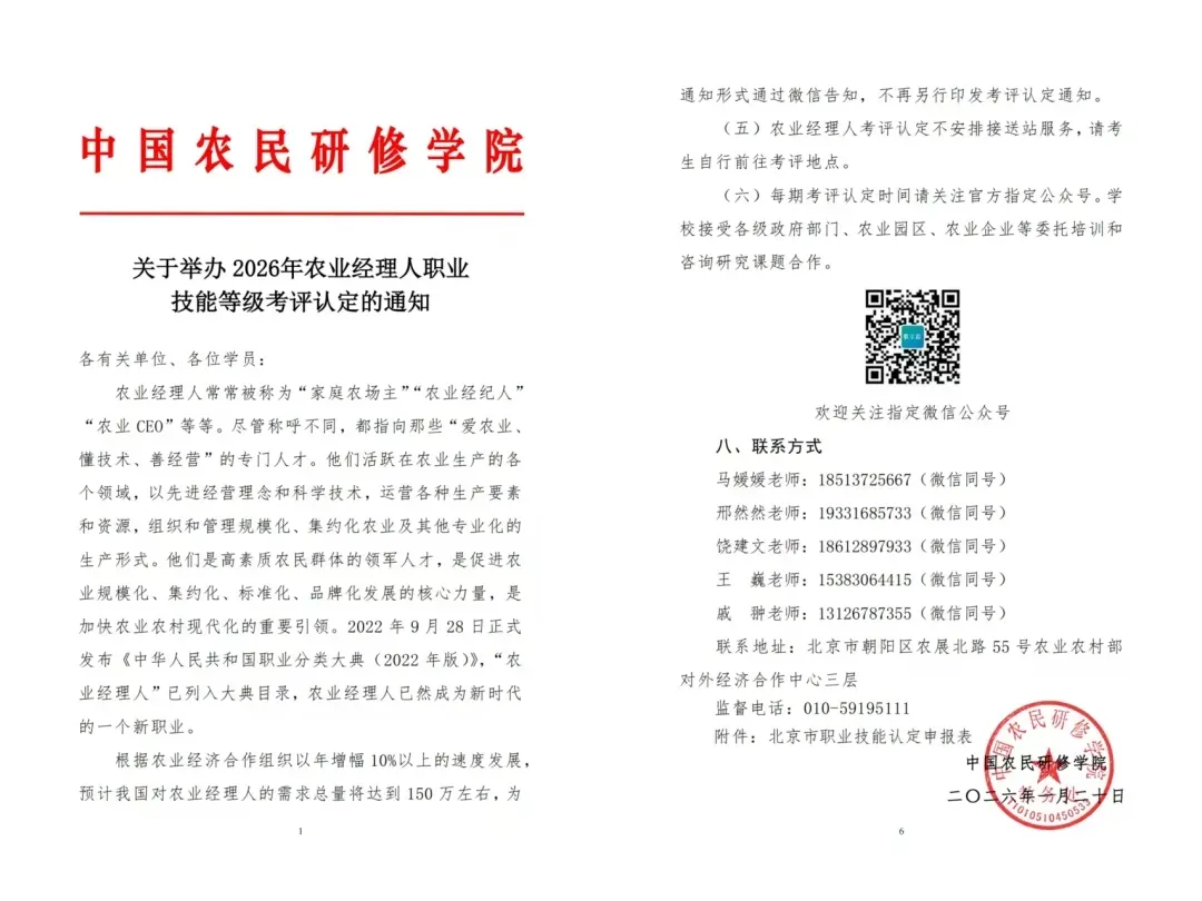 如果你正在农业这条路上摸索前行,那么还有一个非常实在的建议送给你:考一本农业经理人职业技能等级证书。📜 什么是农业经理人证书?农业经理人是2020年3月3日由人社部与农业农村部联合颁布的新职业,2022年已正式列入《中华人民共和国职业分类大典》。简单来说,它就是为懂技术、善经营、会管理的“乡村CEO”量身打造的职业认证。证书分为四级/中级工、三级/高级工、二级/技师、一级/高级技师四个等级,可在国家人社部技能人才评价工作网(zscx.osta.org.cn)全国联网查询,是国家认可、全网通用的权威证书。💡 拿到证书有什么用?✅ 领取技能提升补贴。 根据人社部规定,参加失业保险的职工取得职业技能等级证书后,可申领技能提升补贴,标准为中级工1500元、高级工2000元。浙江遂昌县、云南华坪县等地均已有农业经理人持证人员成功申领补贴的记录。✅ 参与职称评审。 具备高级工及以上职业技能等级的人员,均可参加职称评审(具体以当地政策为准),农业经理人是农业领域唯一管理类证书,是职称评定的重要门槛类证书。✅ 享受地方人才政策。 各地对持证人员的扶持力度不断加码——天津农业经理人高级证书积分落户可加15分、中级加10分;杭州符合条件可直接人才引进落户。南京江宁、广东湛江等地还提供创业贷款、岗位晋升等政策支持。✅ 项目申报的“加分项”。 农业企业在申报农林专项资金、示范企业/基地评定、项目招投标时,农业经理人职业技能等级证书可作为重要加分项,助力企业争取更多政策资源。一句话总结:考一本农业经理人证书,既能提升专业能力、拿到真金白银的补贴,又能为职称评定、人才政策、项目申报铺路搭桥。 对于正在田野间耕耘的新农人来说,这无疑是一笔“稳赚不赔”的自我投资。