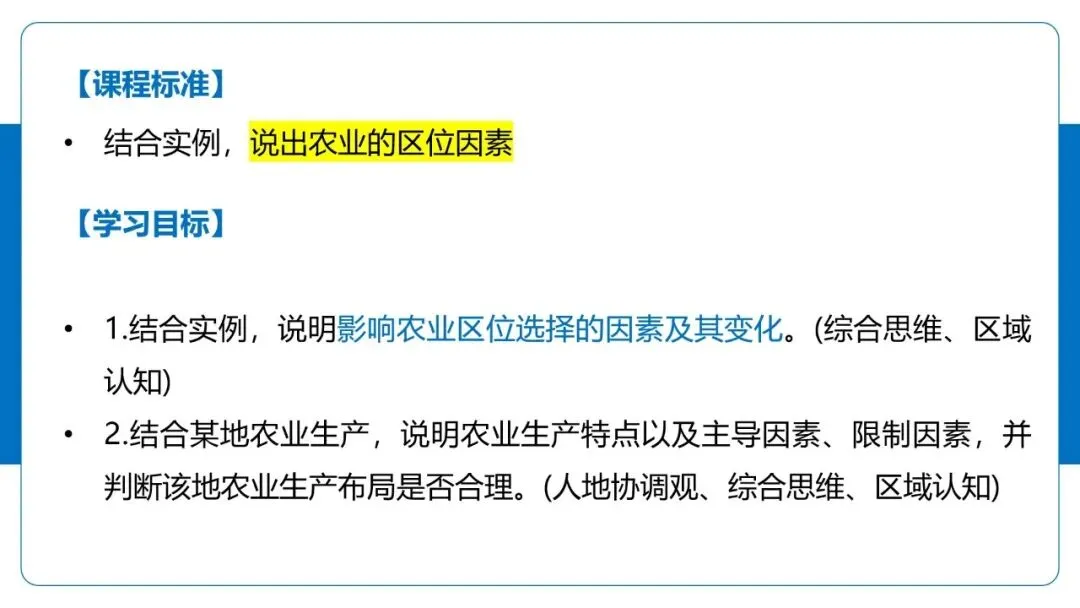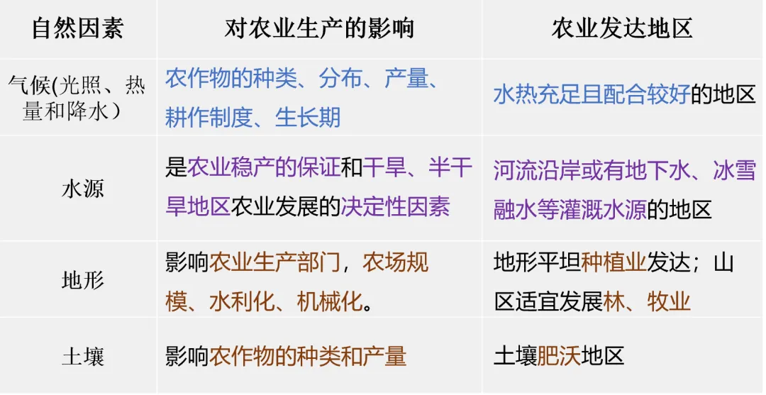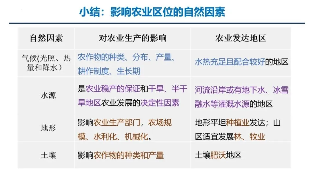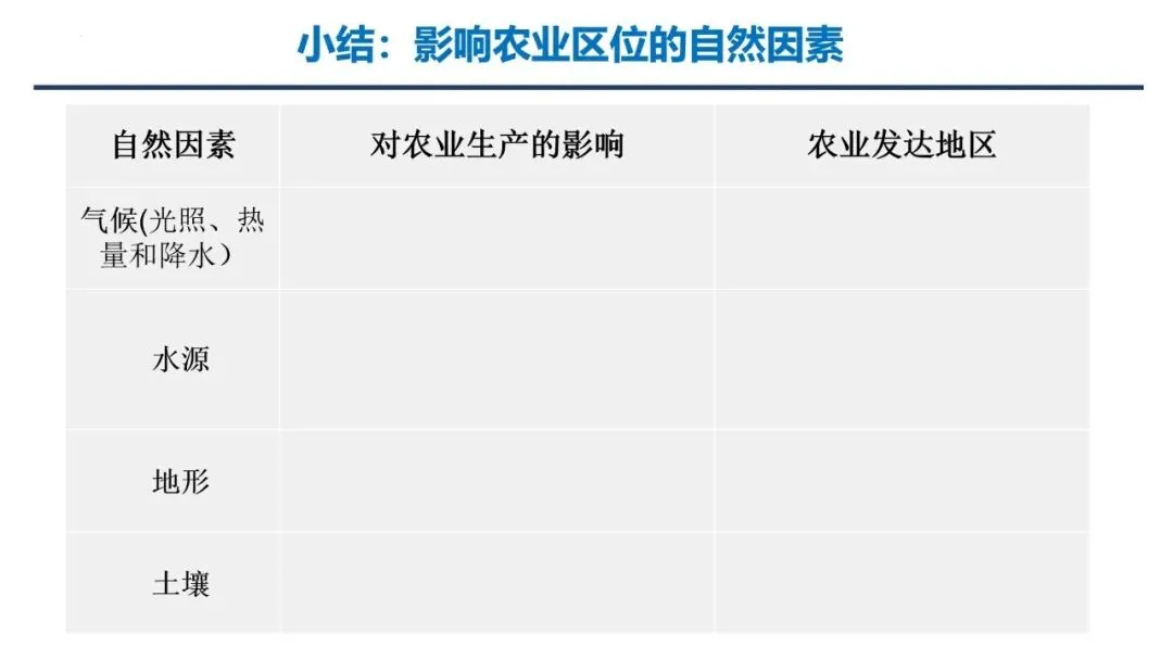 ◑难点:农业区位因素及其变化对农业生产的影响。