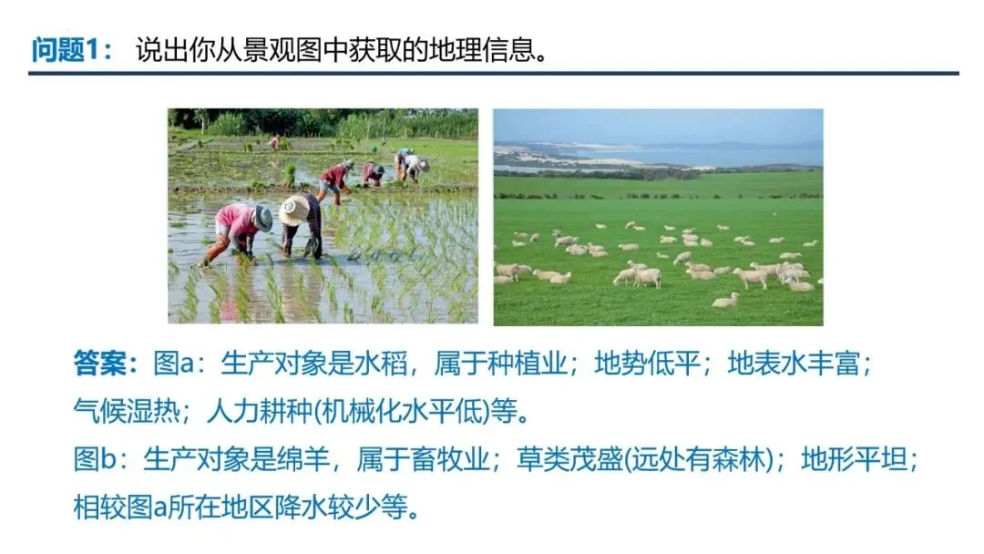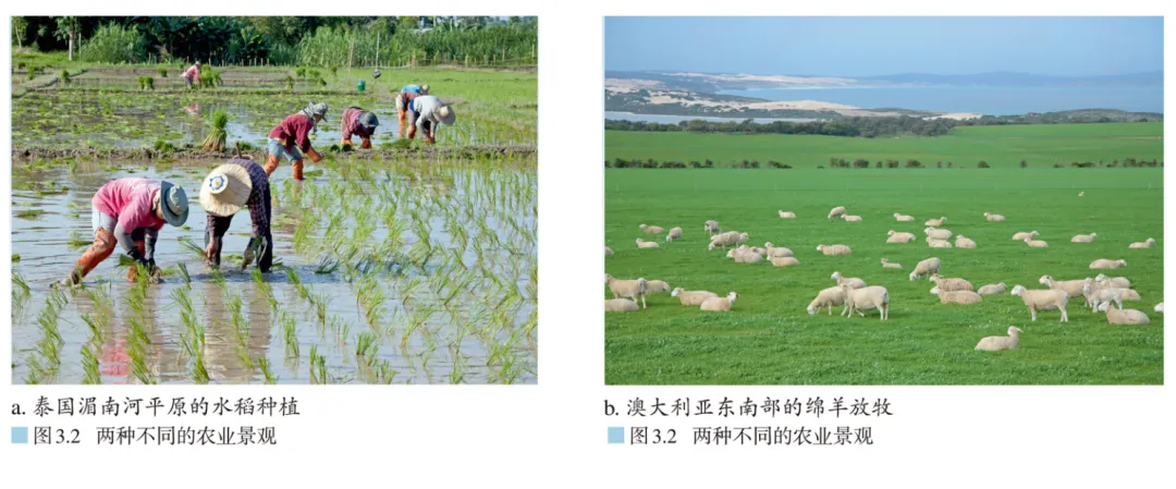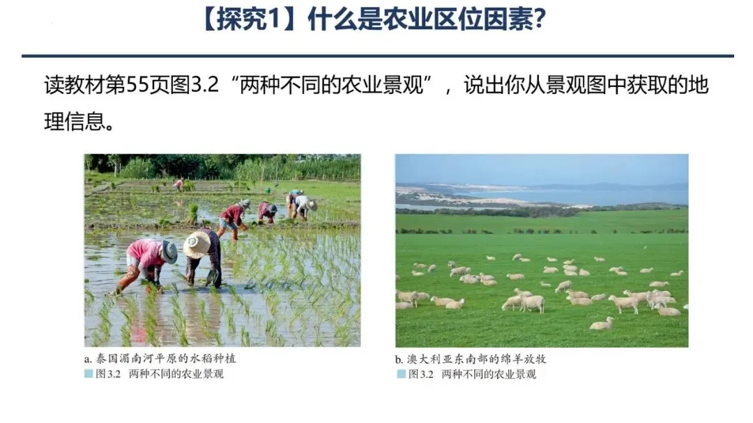 问题设计-Q1:读教材第55页图3.2“两种不同的农业景观”,说出你从景观图中获取的地理信息。