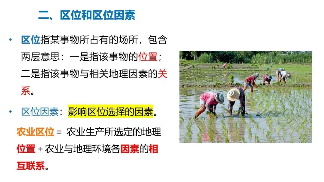 ◑重点:区位的含义,农业区位因素的分析和分类。