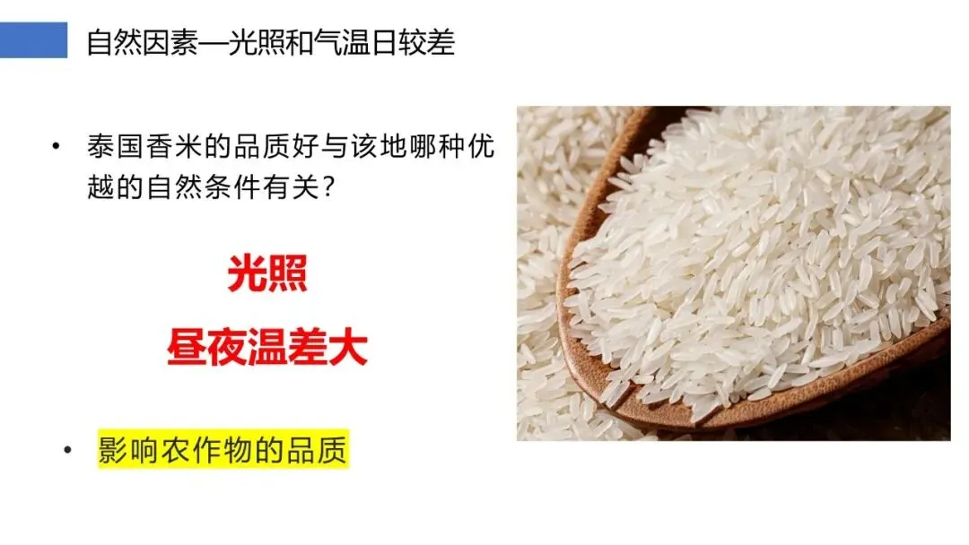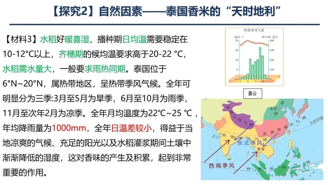 问题设计-Q3. 结合上述材料,分析影响泰国香米在泰国广泛种植的“天时地利” ?