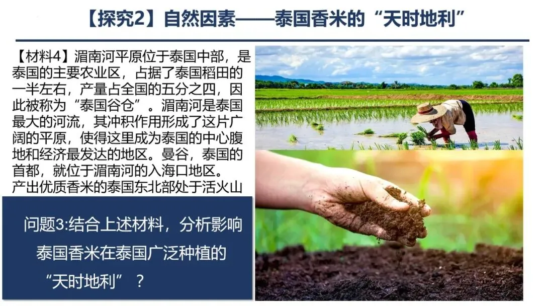 问题4:结合上述材料,分析影响泰国香米在泰国广泛种植的“人和”条件?