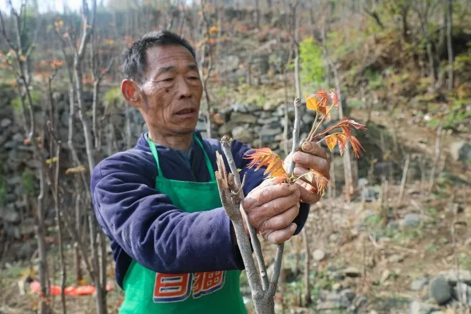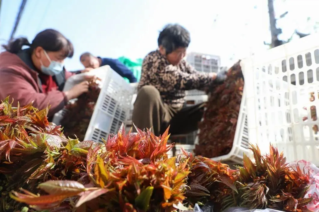 △鲁西村村民正在采摘红芽香椿。