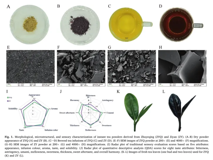 1、系统对比绿叶、紫叶茶树品种速溶绿茶粉的非挥发性成分、感官品质与生物活性差异,明确品种对速溶茶品质的核心影响。