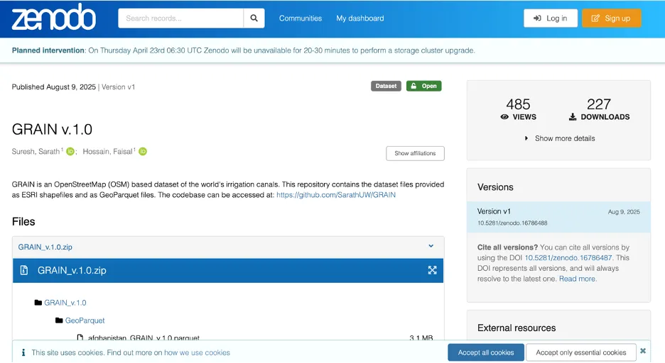 Suresh, S., Hossain, F., Mishra, V., and Hossain, N.: GRAIN – a Global Registry of Agricultural Irrigation Networks, Earth Syst. Sci. Data, 18, 1855–1875, https://doi.org/10.5194/essd-18-1855-2026, 2026.